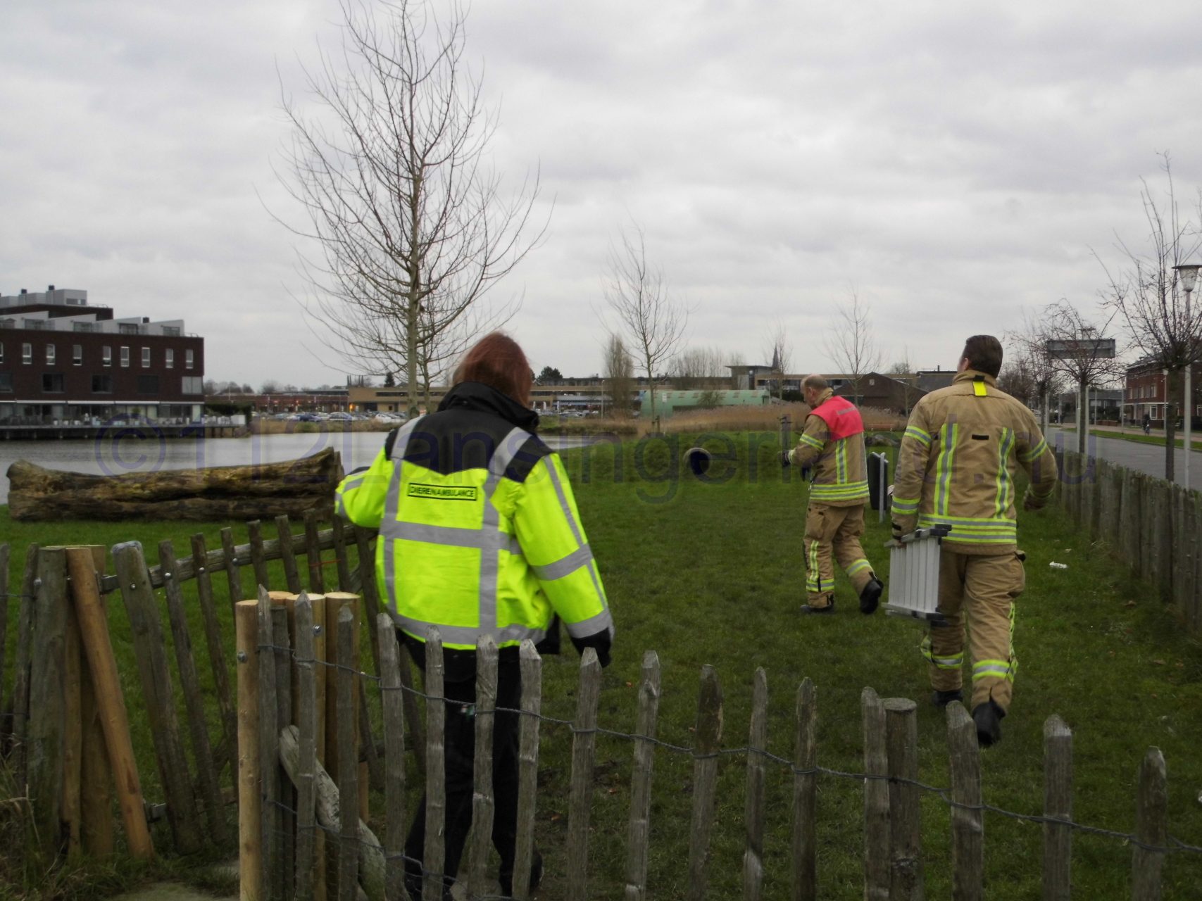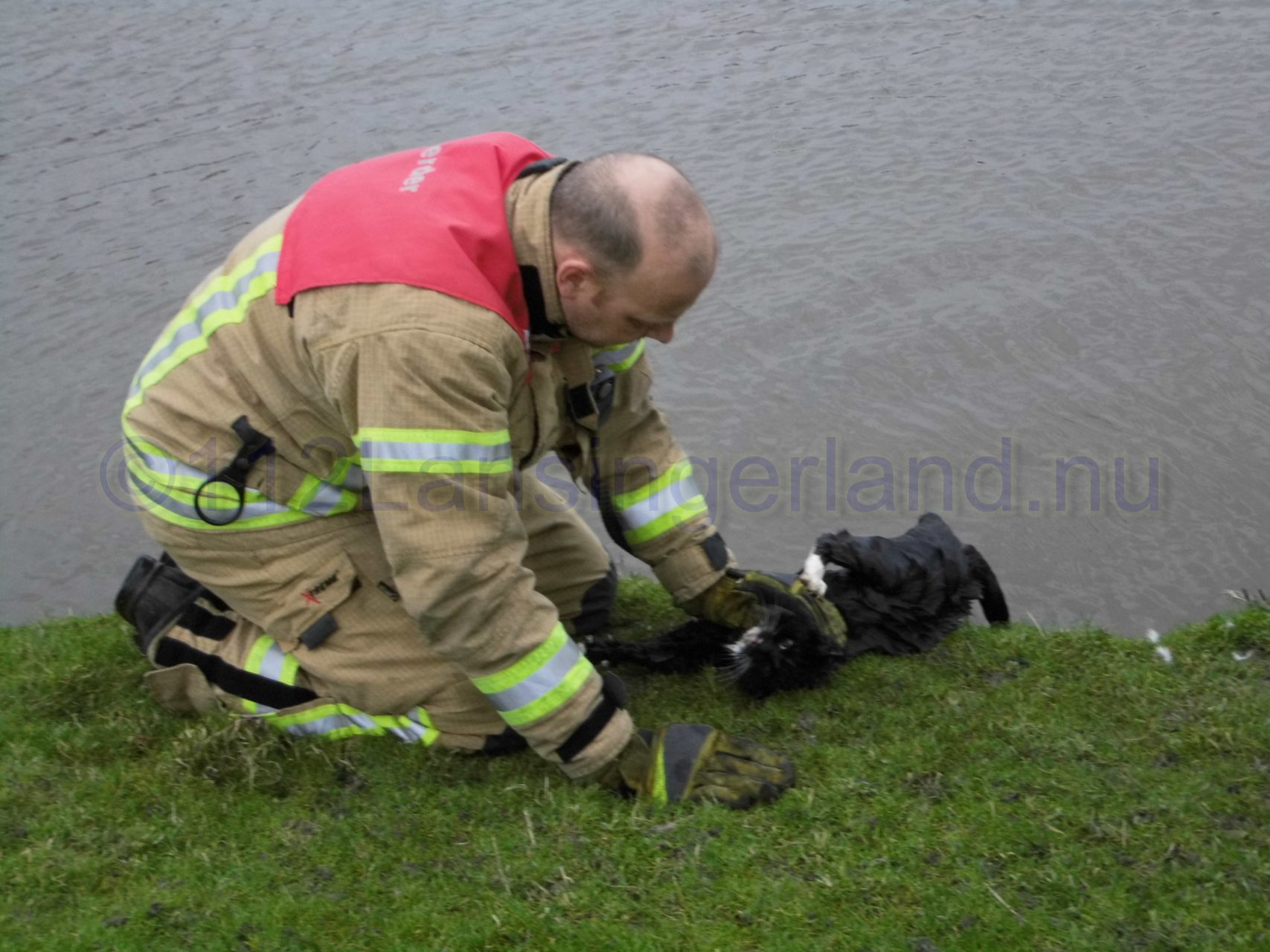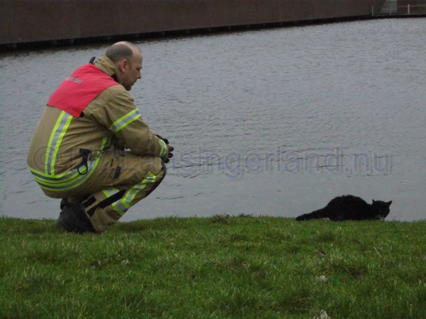 De dierenambulance werd in eerste instantie gebeld. De medewerker van de dierenambulance lukte het niet om de kat uit de boom te halen en schakelde hiervoor de brandweer in. De brandweer heeft de kat uit de boom gekregen. Nadat de kat op de grond was wilde de medewerker van de dierenambulance de kat meenemen, echter ontsnapte de kat en kwam hij in het water terecht. De brandweer is toen nogmaals in actie gekomen en heeft de kat uit het water gehaald. De kat is meegenomen door de dierenambulance voor controle.