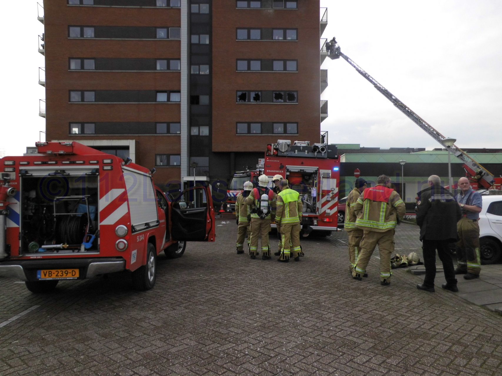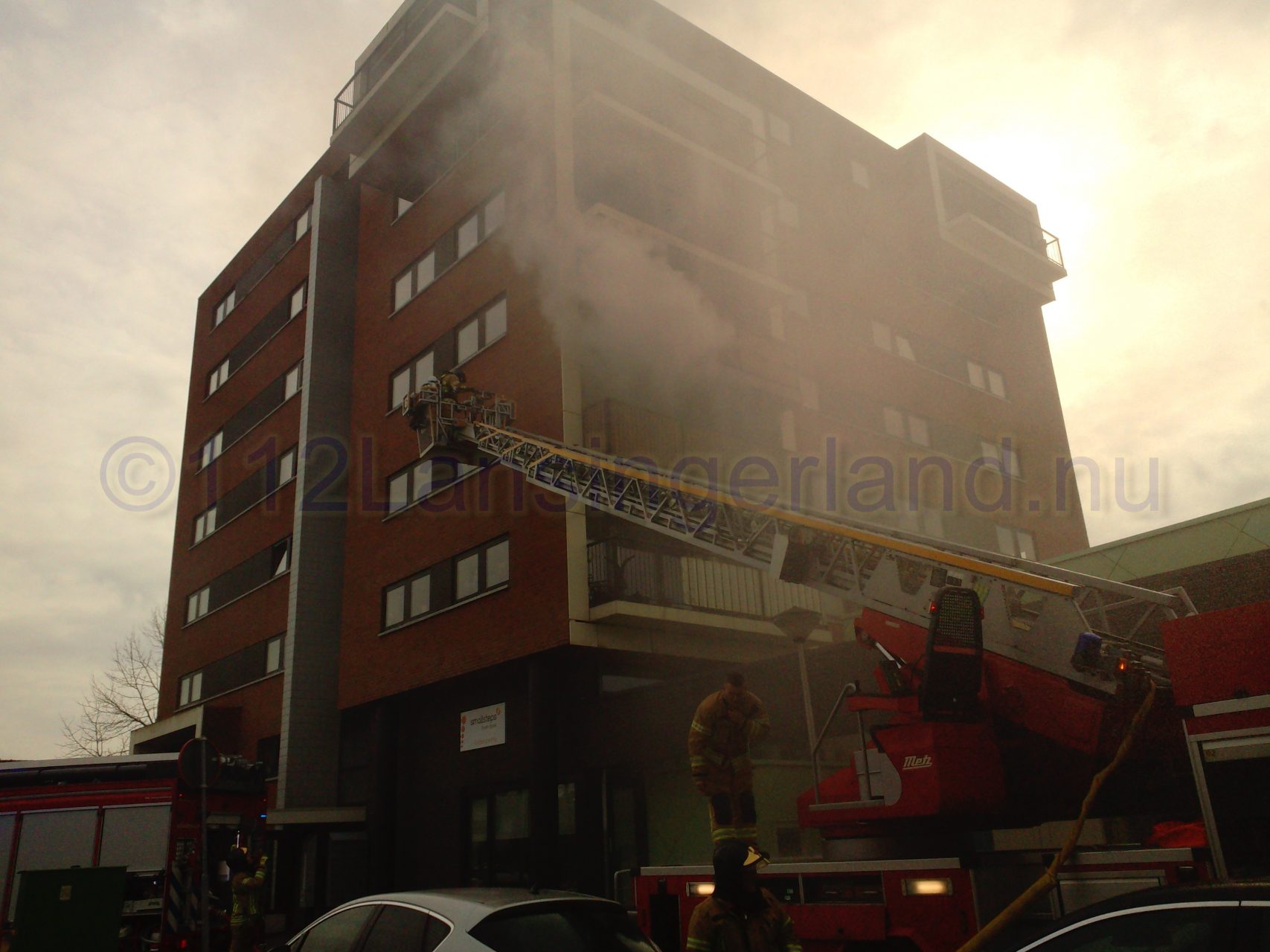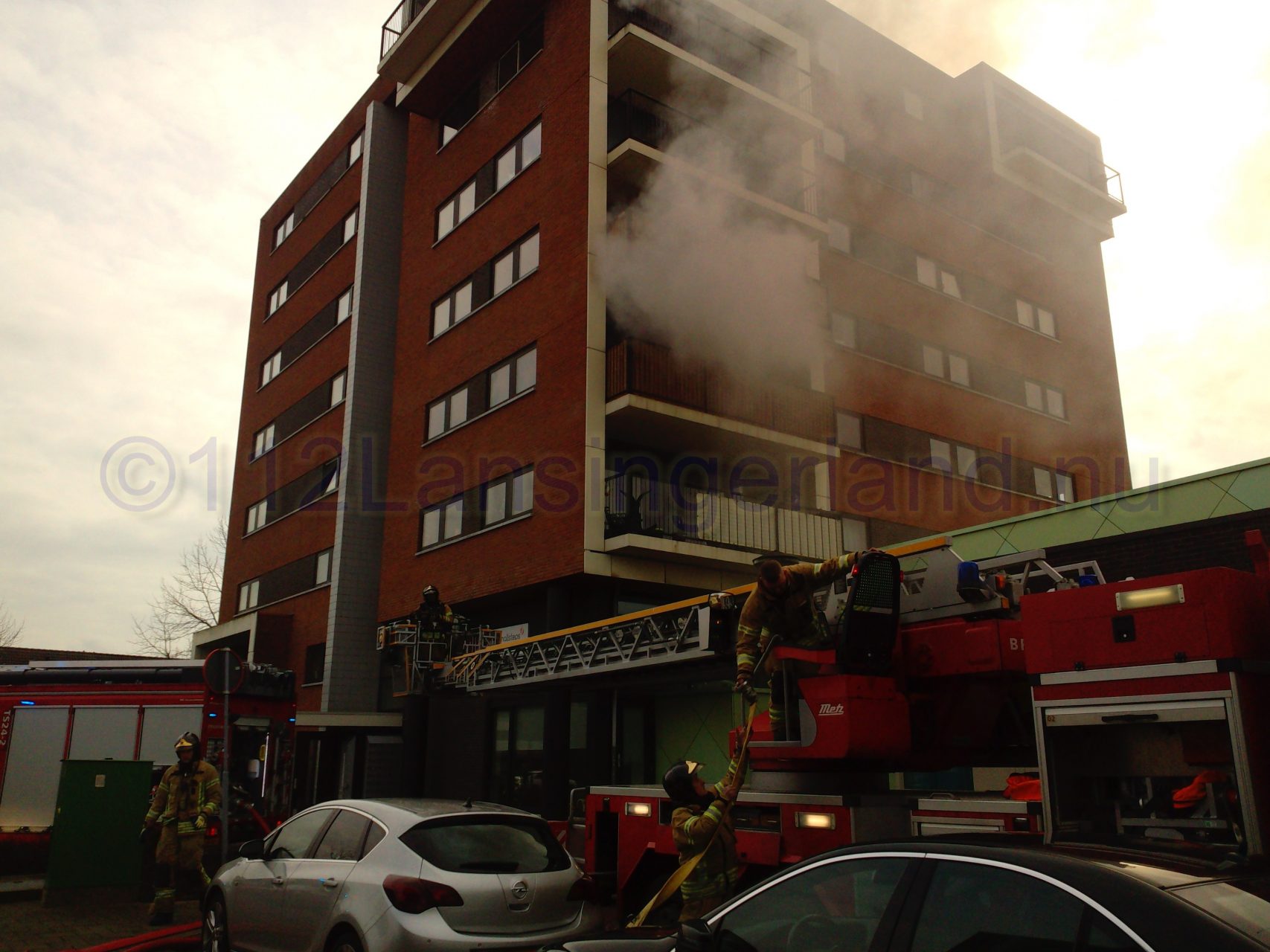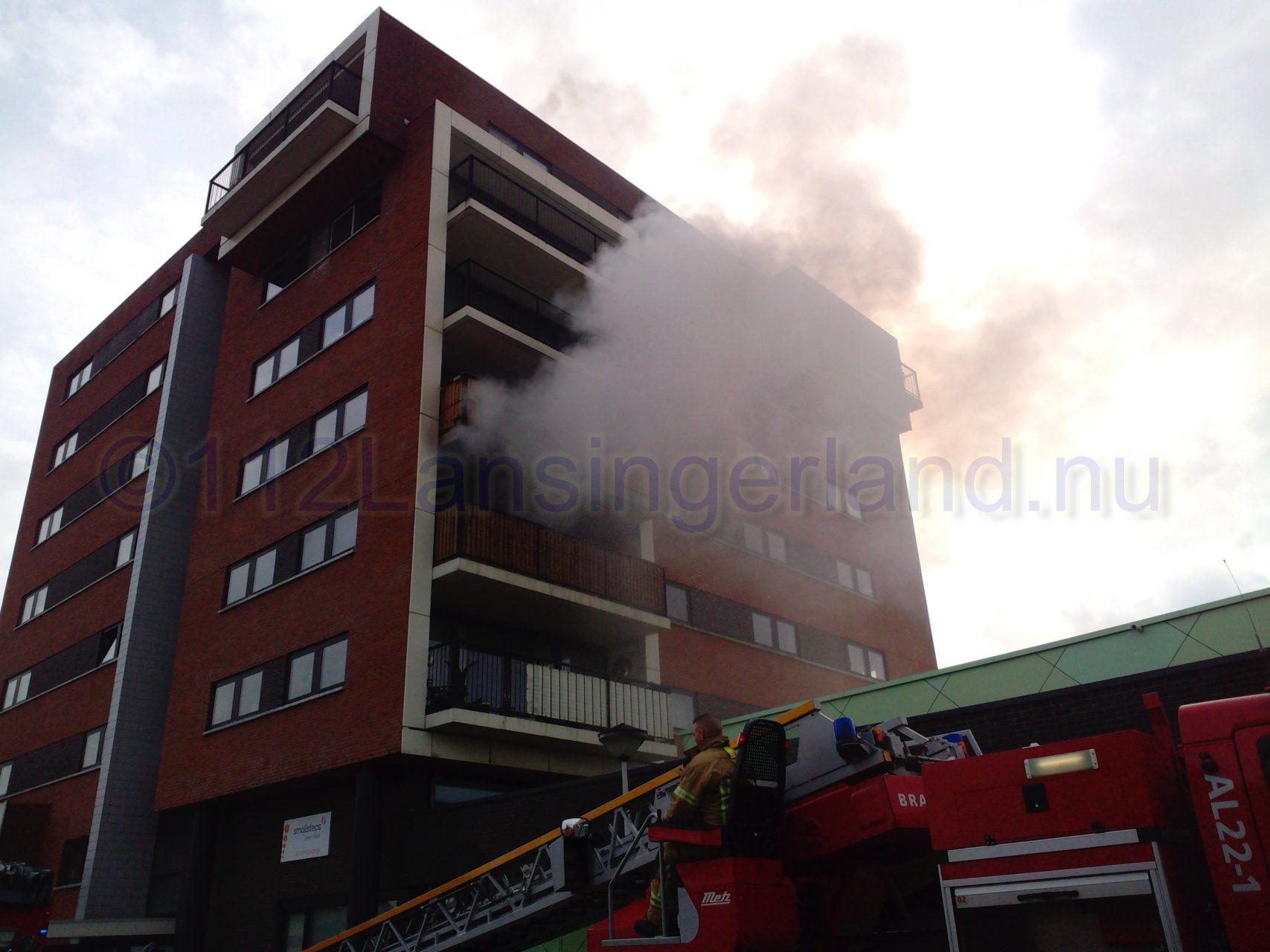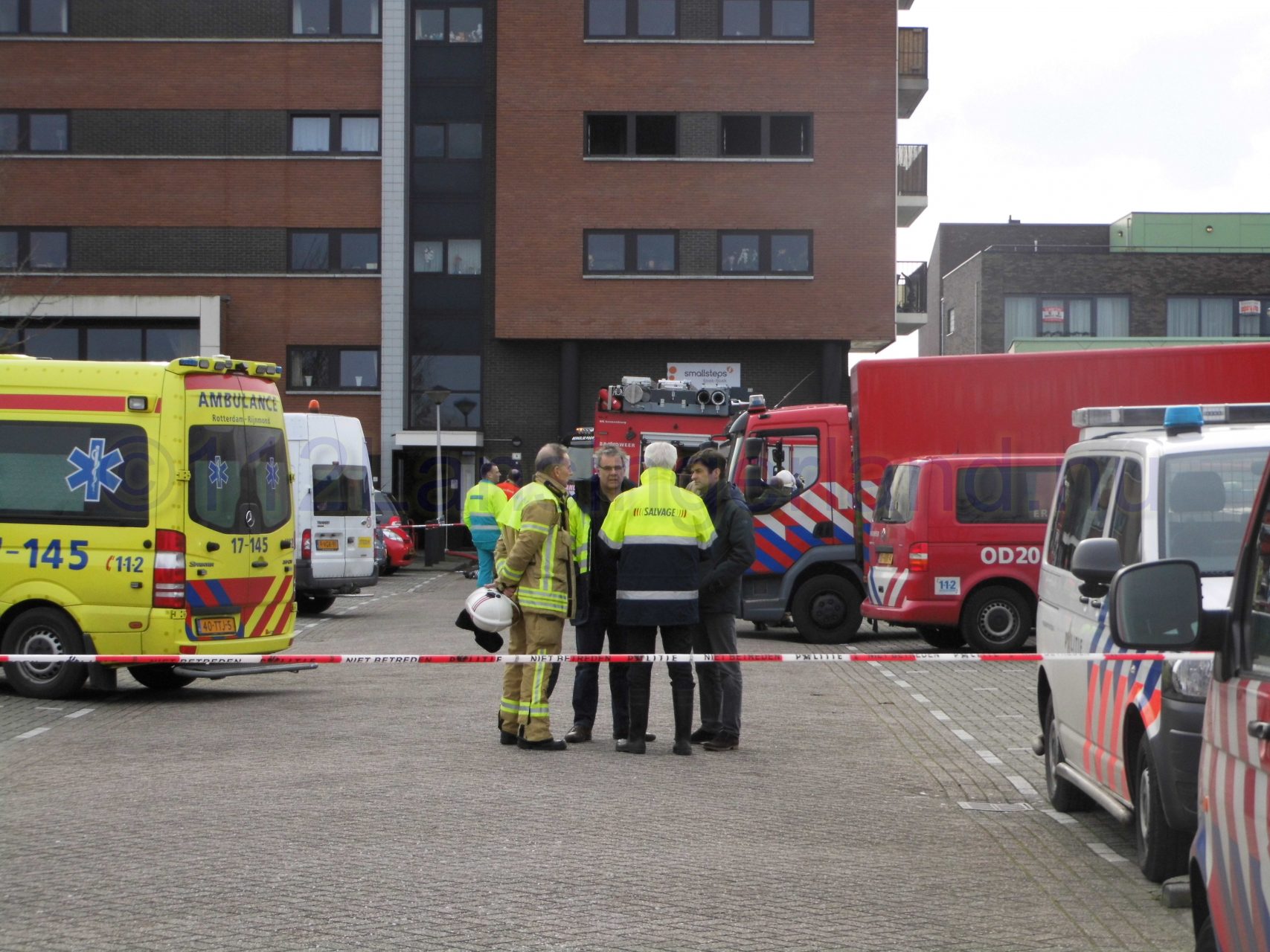 Bij aankomst van de brandweer kwam er flinke rookontwikkeling vrij uit een flatwoning op de 2de etage. Alle appartementen in het complex zijn ontruimd, de brandweer heeft mensen naar beneden gebracht. Ook een kinderdagverblijf op de begane grond is ontruimd.