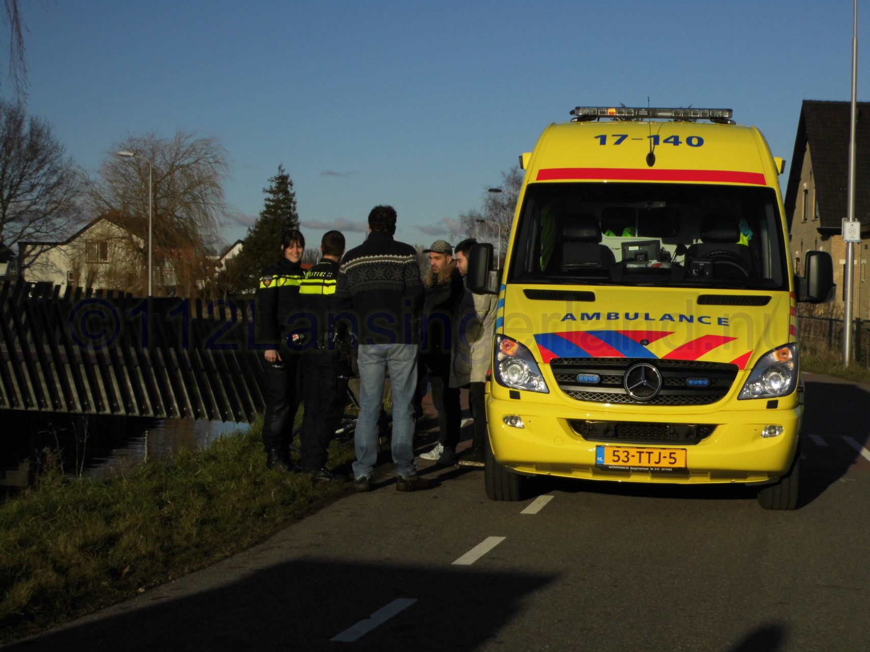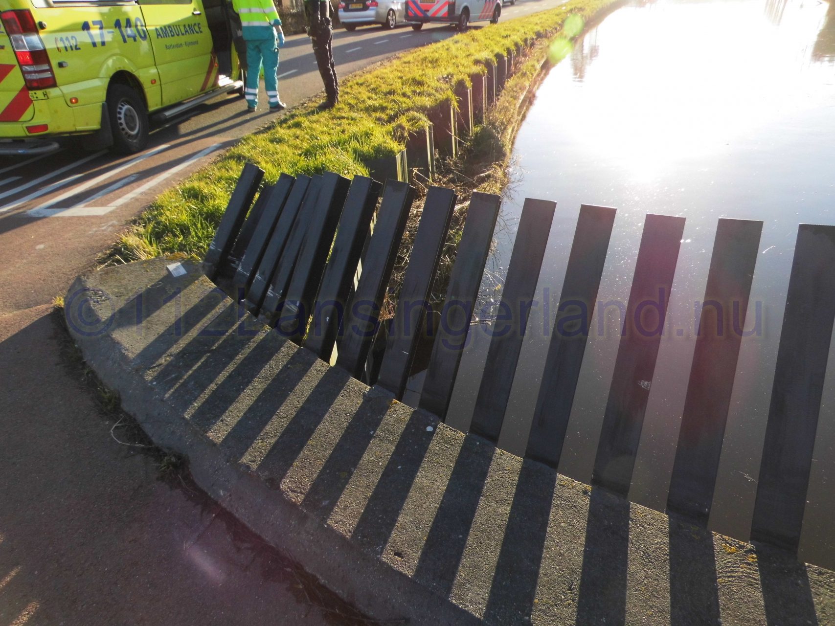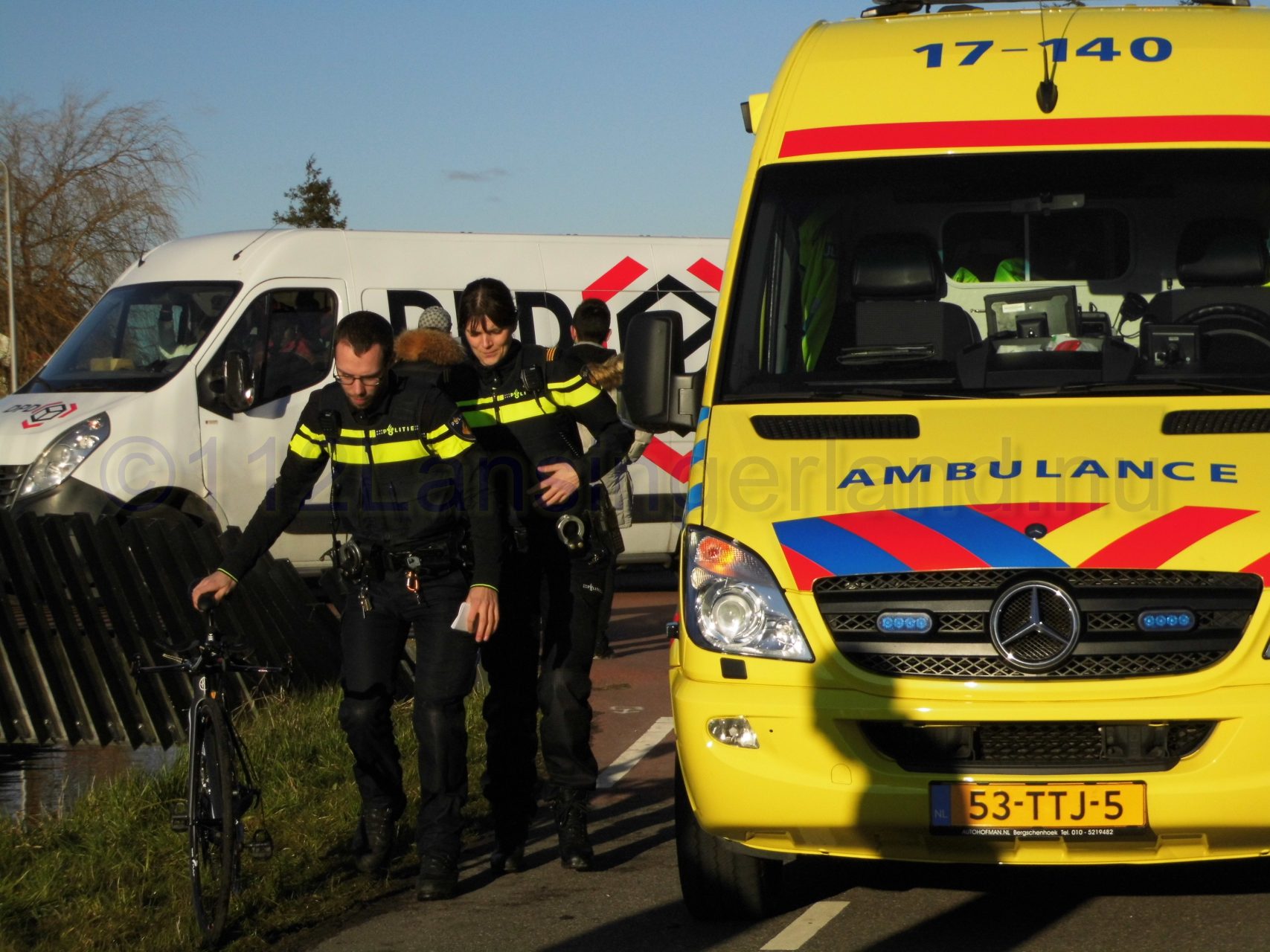 De hulpdiensten waren snel ter plaatse. Al snel bleek het te gaan om een fietser die door de zon de weg niet zag en tegen een brug aan is gereden. Hierdoor maakte hij een koprol en belande uiteindelijk in het water. Twee voorbijgangers op een brommer zagen het gebeuren en hielpen de man uit het water. De fietser had last van zijn rug en is ter plaatse behandeld door het ambulancepersoneel waarna hij is meegenomen naar het ziekenhuis. De fiets wordt thuisgebracht door de politie.