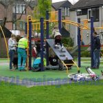 Waardoor het meisje van het klimtoestel is gevallen is niet bekend.
