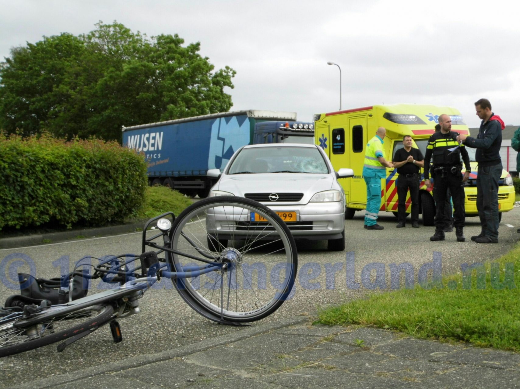 Een automobilist heeft een fietsster aangereden, hierdoor is de fietsster hard ten val gekomen. In de voorruit van de auto zit een flinke barst. Het meisje is gecontroleerd door het ambulancepersoneel maar hoefde niet mee naar het ziekenhuis. De fiets heeft veel schade waardoor zij haar weg niet kon vervolgen.