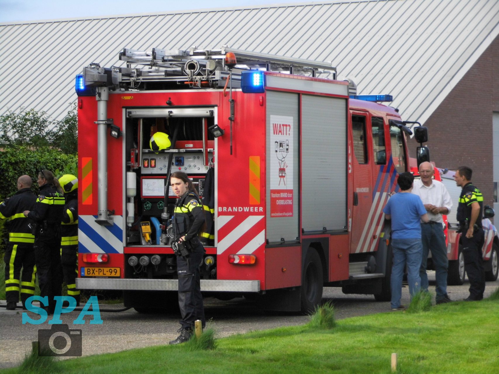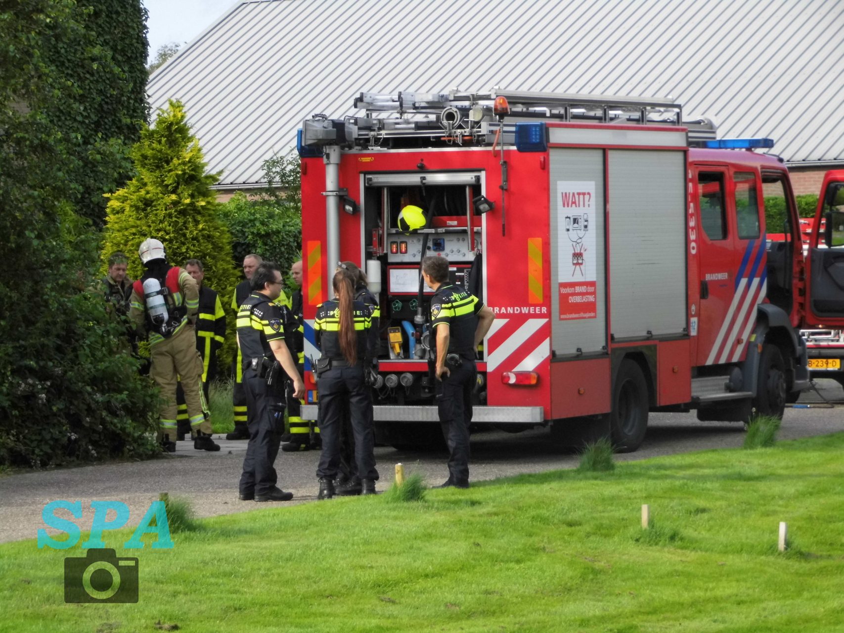 De brandweer is met spoed ter plaatse gekomen en heeft in de hal de brand geblust. Door de brand was er boven in de slaapkamer een hoop rook ontstaan, de brandweer heeft de woning geventileerd.