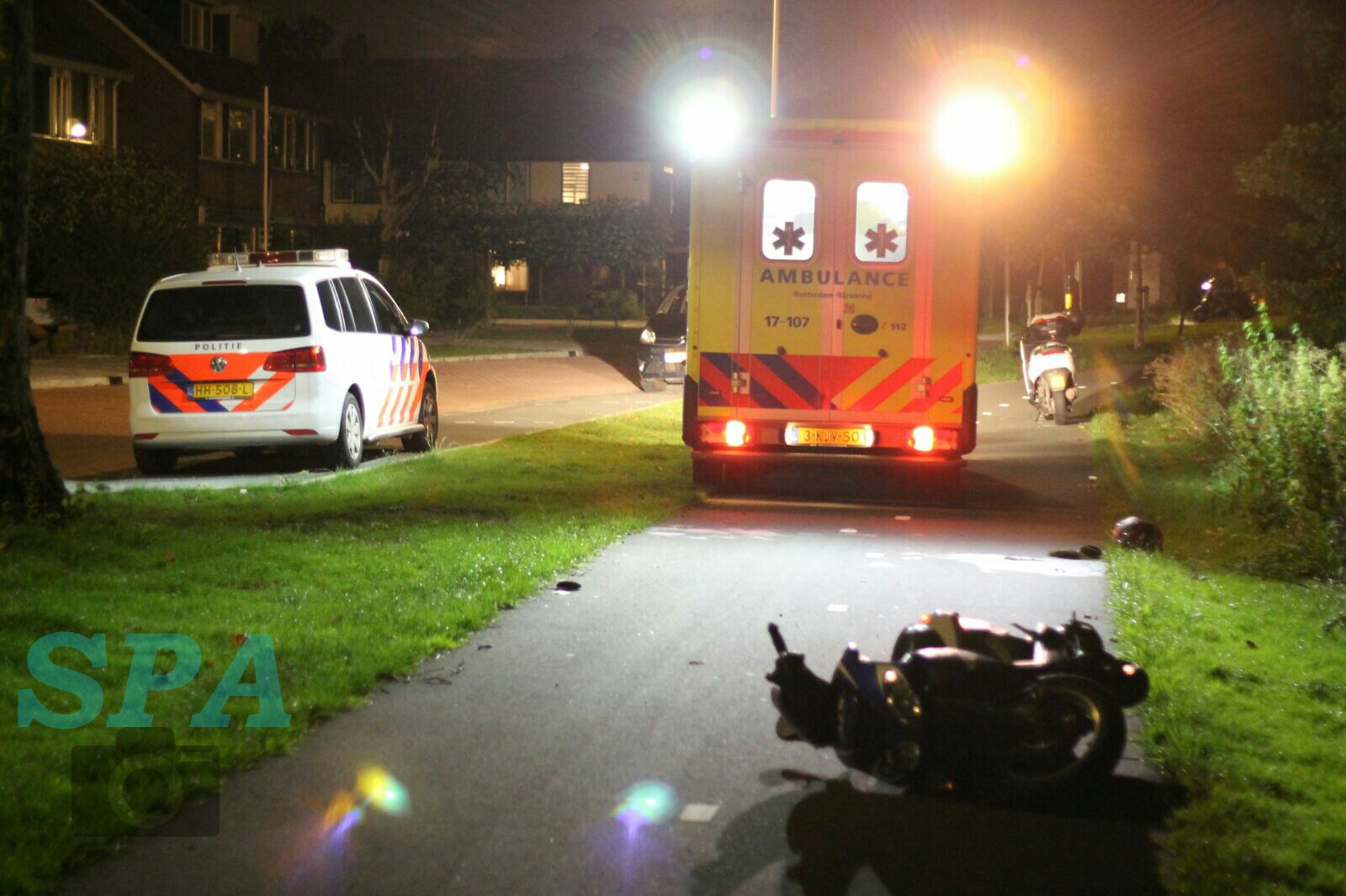 Een bergingsbedrijf is ter plaatse gekomen en heeft een van de scooters meegenomen.