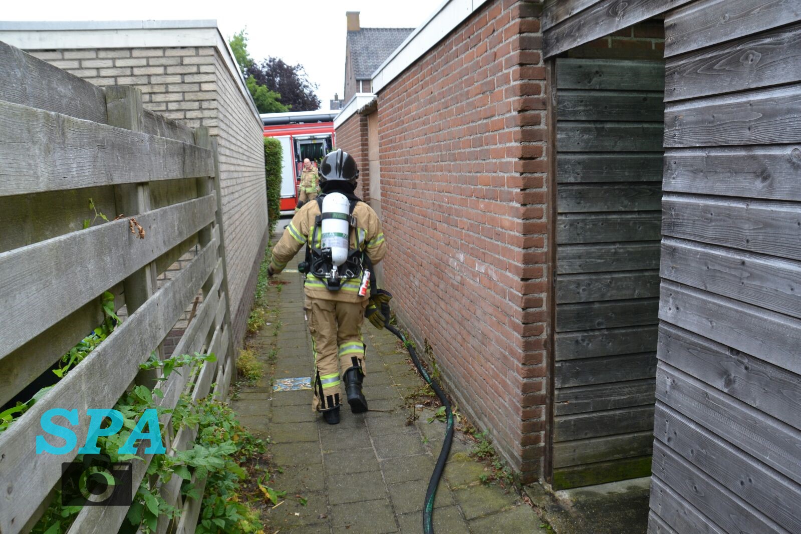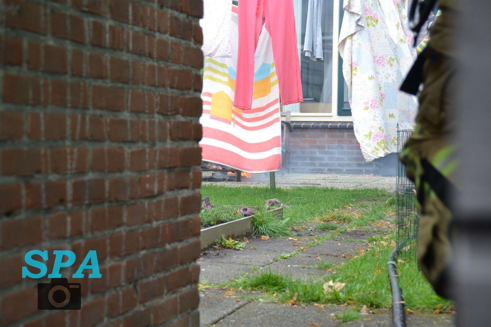 Ter plaatse bleek er in de achtertuin iets te branden, mogelijk was dit een tafeltje.