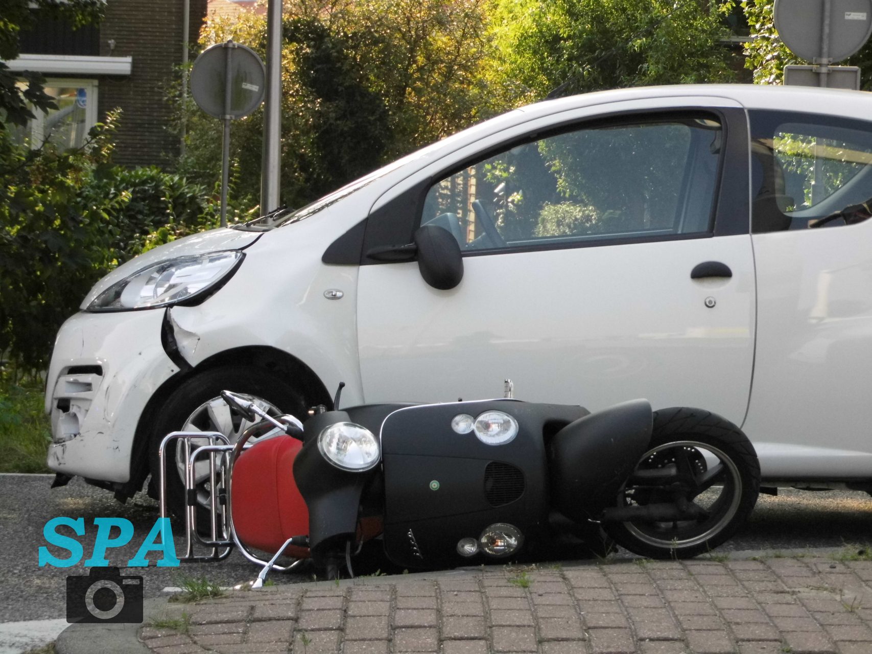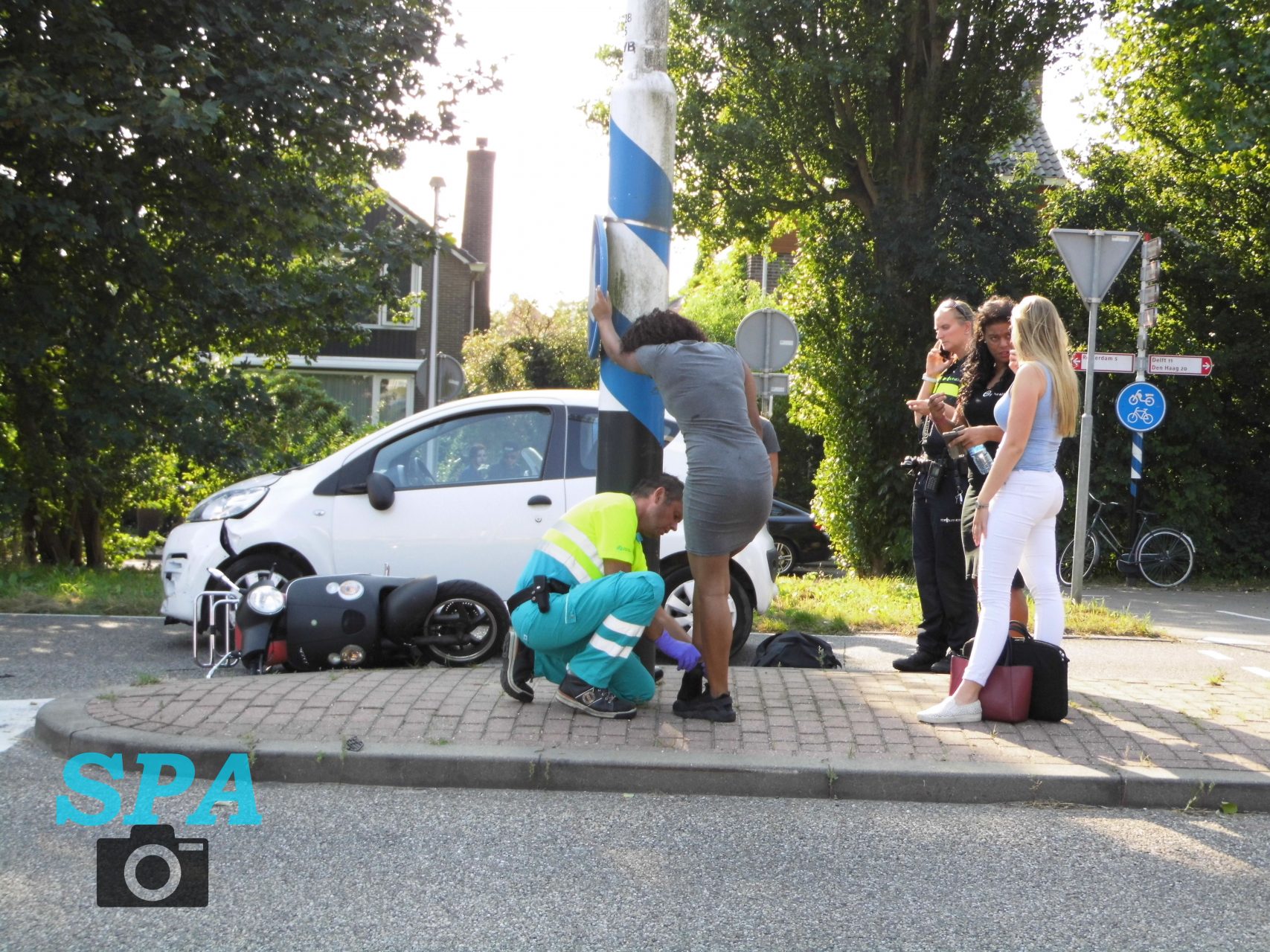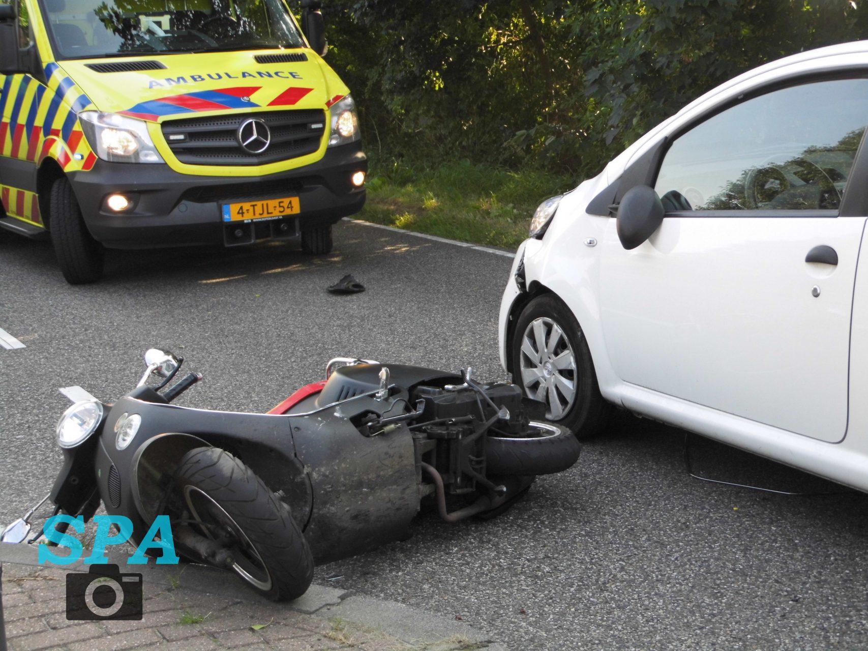 Ter plaatse bleek er een ongeval gebeurd te zij op de Spoorhaven / Provincialeweg, hier waren een personenauto en een scooter met elkaar in botsing gekomen bij een oversteekplaats. De scooterbestuurster is ter plaatse behandeld door het ambulancepersoneel en is later meegenomen voor controle naar het ziekenhuis. De bestuurder van de personenauto is er met de schrik en veel schade aan de zijkant van het voertuig vanaf gekomen.