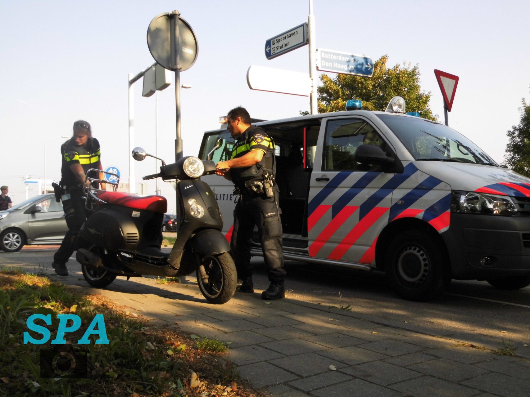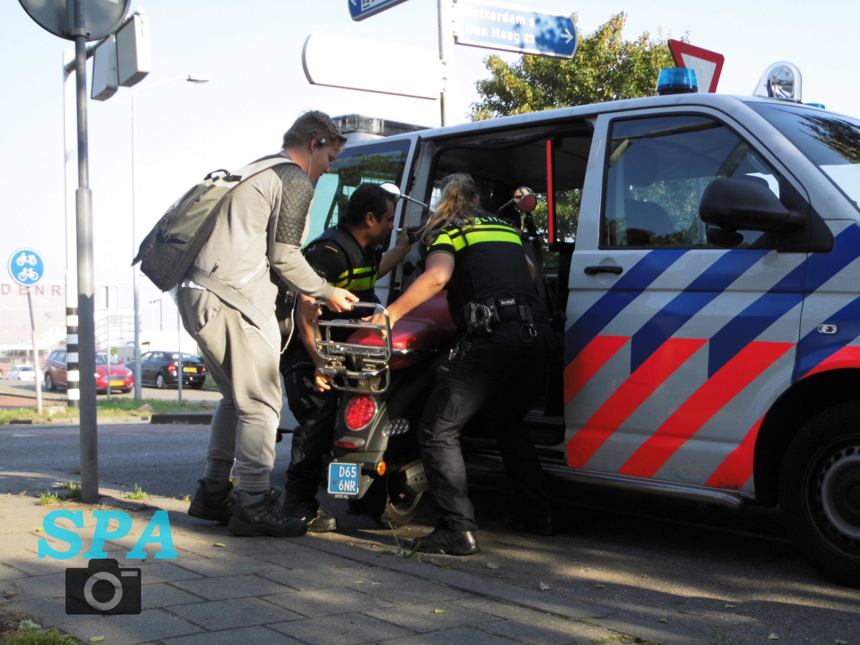 De politie heeft geprobeerd de scooter achterin de politiewagen te krijgen om deze thuis te brengen. De scooter was te groot waarna familieleden de scooter zelf hebben meegenomen.