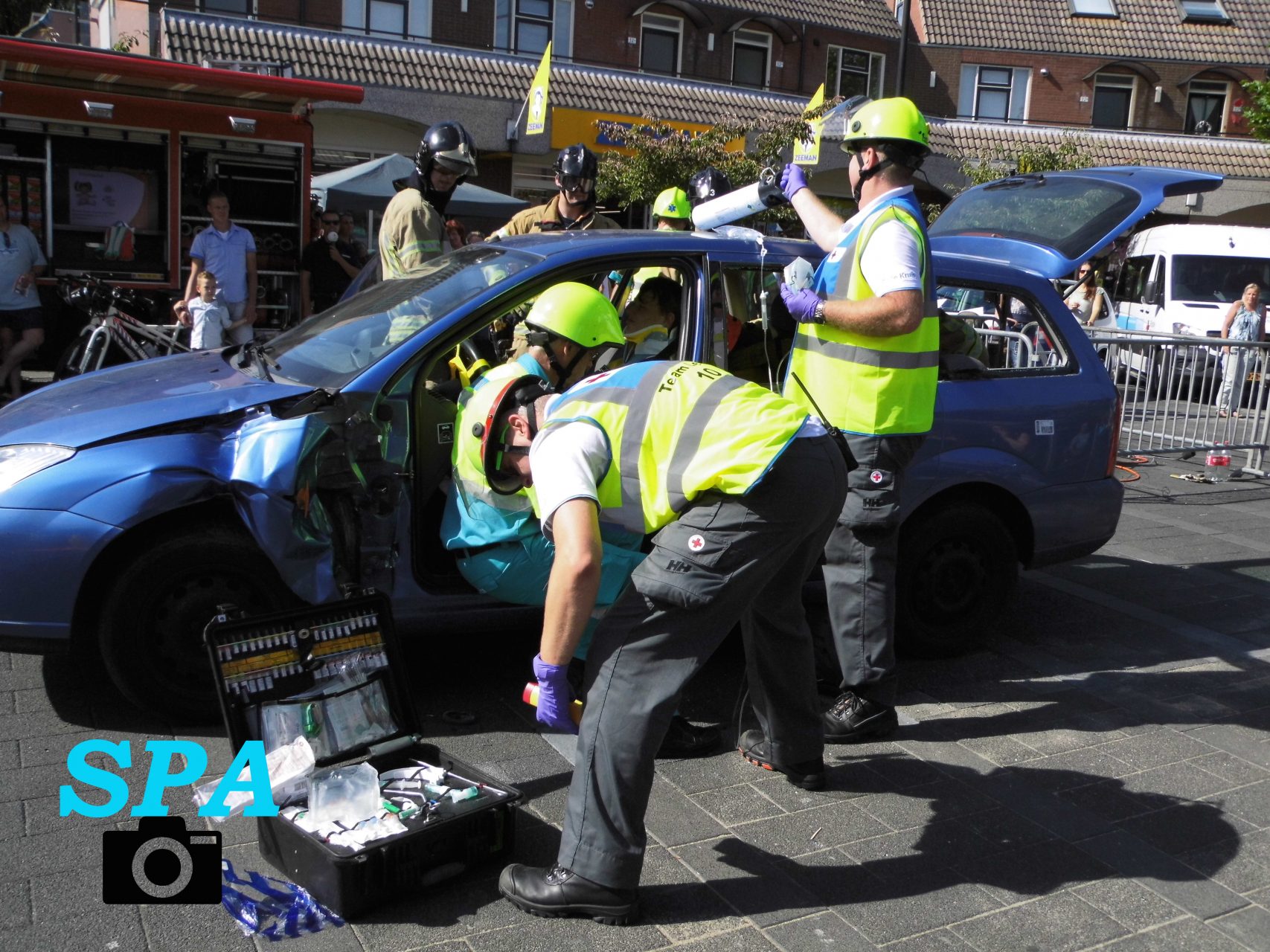 Er werd ook een scenario nagebootst waarbij twee personen bekneld zaten in een voertuig. Doormiddel van het openknippen van het voertuig konden zij bevrijd worden. Op het plein stonden diverse organisaties met stands waar bezoekers geïnformeerd werden. Tegen 16:00 uur liep de druk bezochte veiligheidsdag op zijn eind.