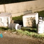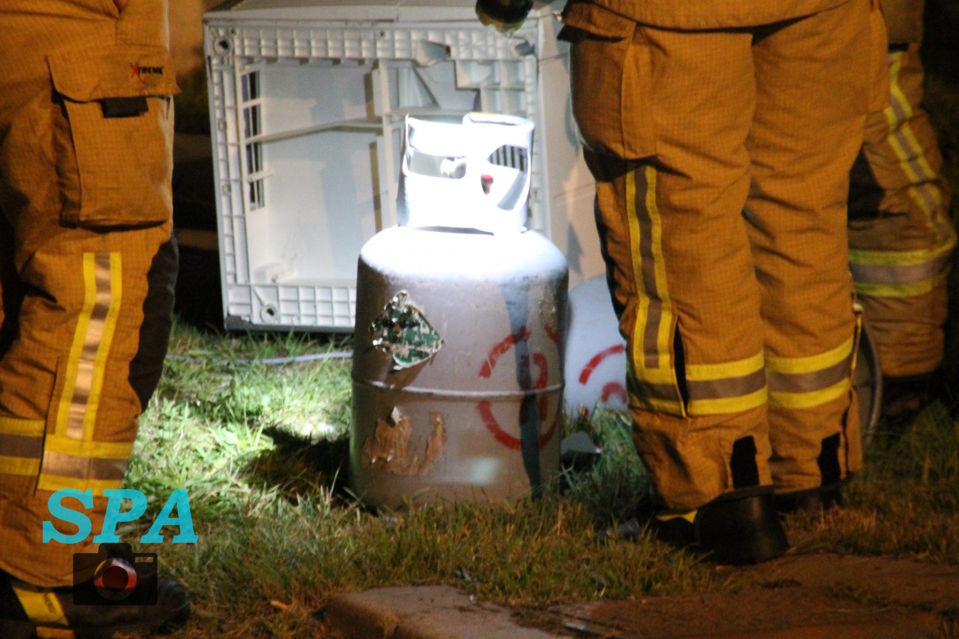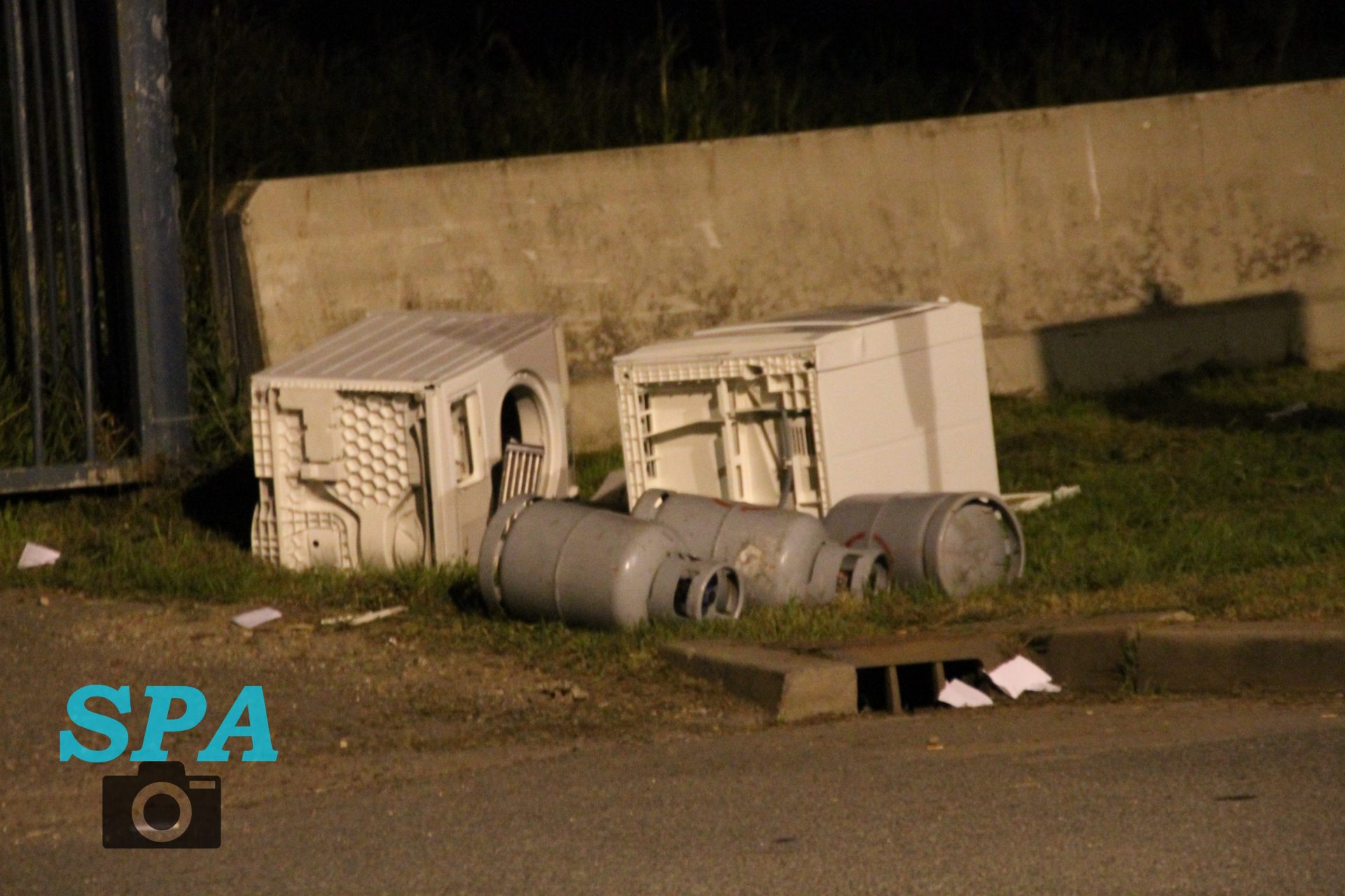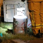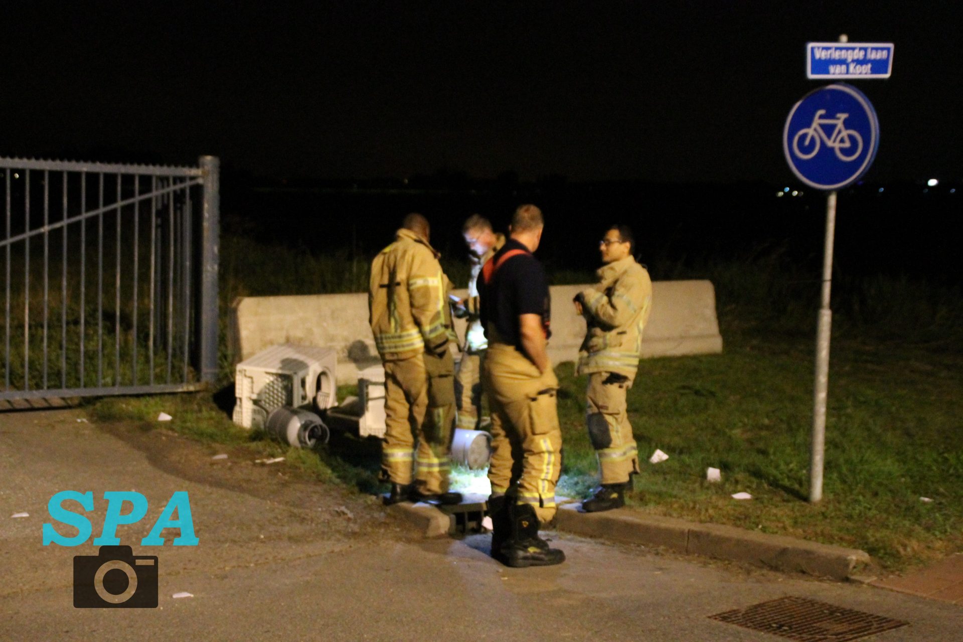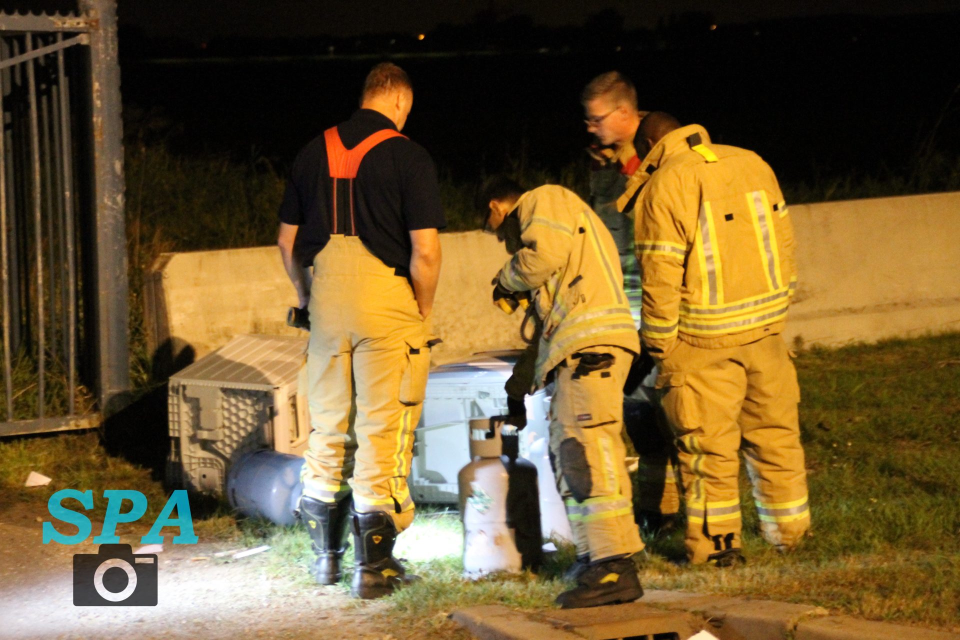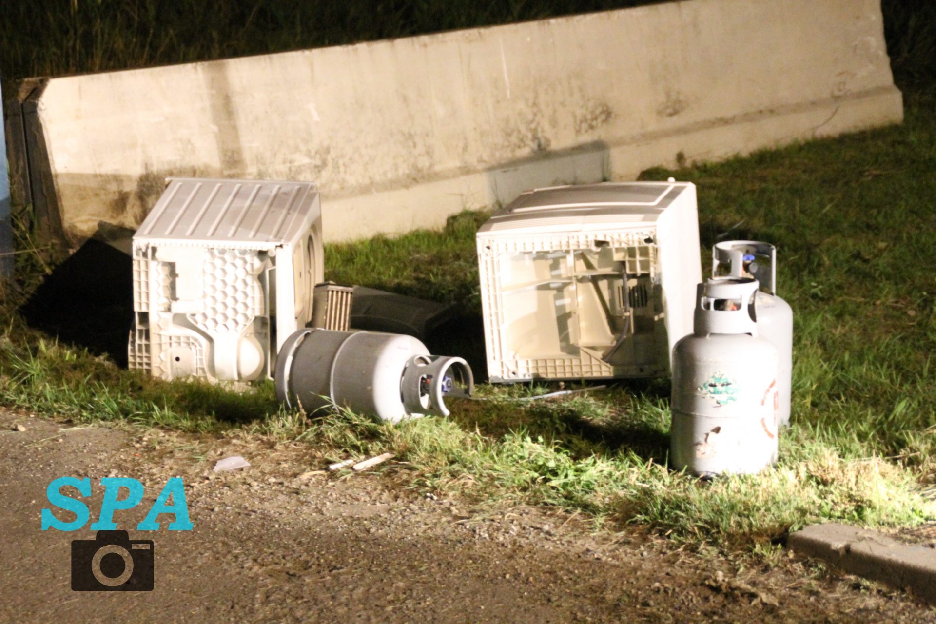 De politie trof hier gedumpt afval aan, een wasmachine, droger een een aantal gasflessen. De politie heeft de brandweer laten komen om het afval te controleren. De brandweer heeft hier kort onderzoek gedaan, en heeft na overleg met de politie besloten het afval te laten liggen.
