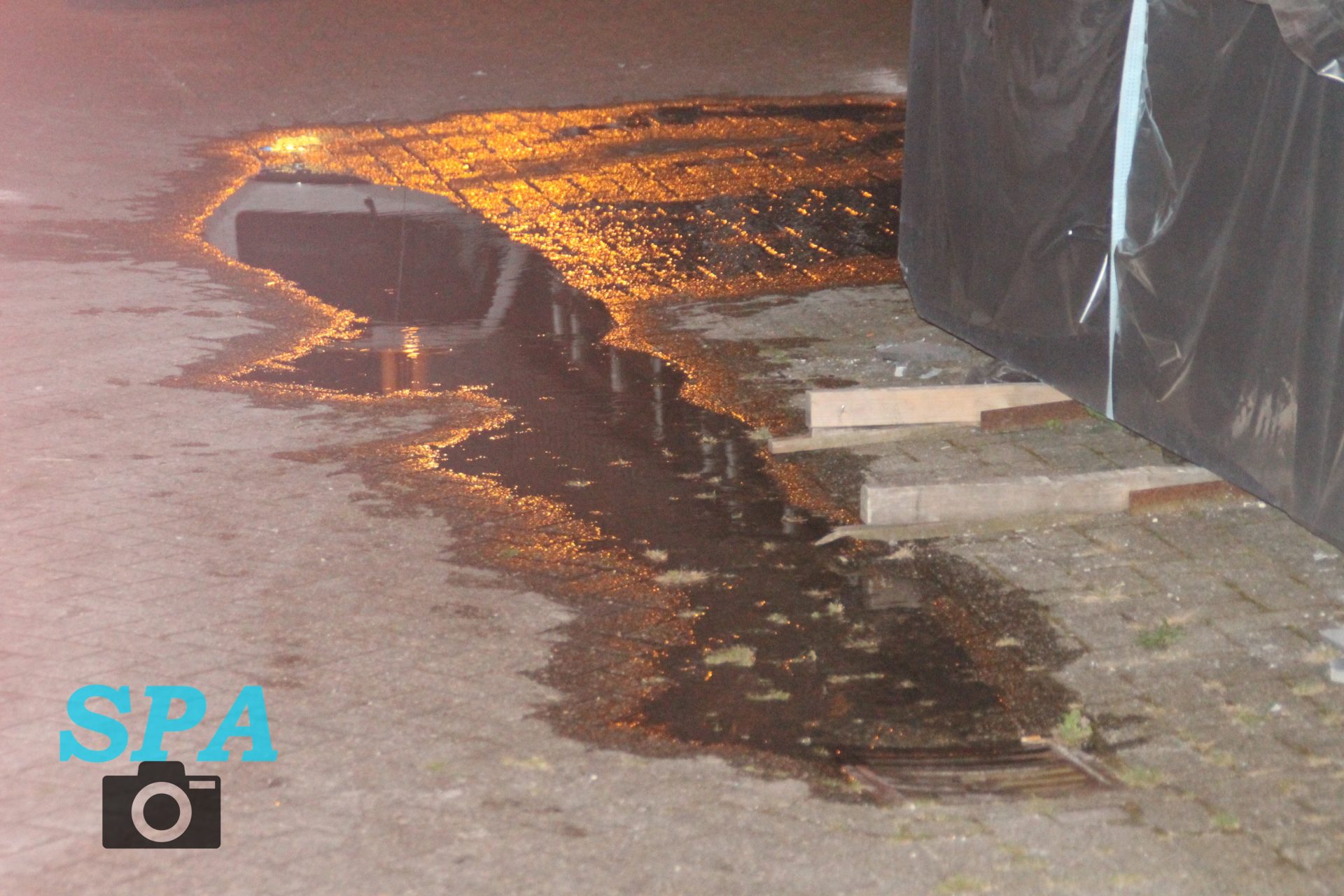 Hier troffen de hulpdiensten inderdaad flink wat water aan buiten een bedrijfspand. De brandweer heeft onderzocht waar het precies vandaan kwam en heeft de eigenaar hierover ingelicht. De eigenaar is met de sleutel ter plaatse gekomen, en zijn het pand ingegaan, en hebben onderzoek gedaan.