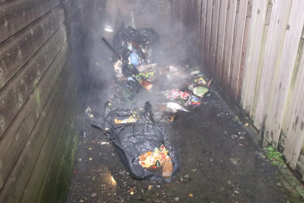 Omstreeks 2:50 uur werd de brandweer gealarmeerd nadat de bewoner net thuis kwam en metershoge vlammen boven zijn schuur zag uitkomen.  De brandweer kwam met spoed ter plaatse waar bleek dat er drie vuilcontainers in brand stonden.