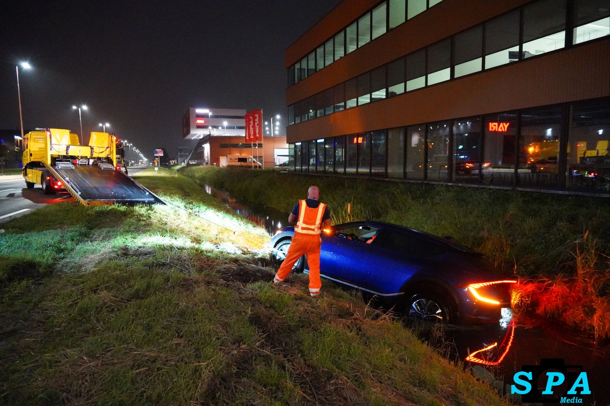 Berkel en Rodenrijs – Dinsdagavond is een automobilist de macht over het stuur verloren en met een volledig elektrische auto te water geraakt langs de N471 in Berkel en Rodenrijs.
