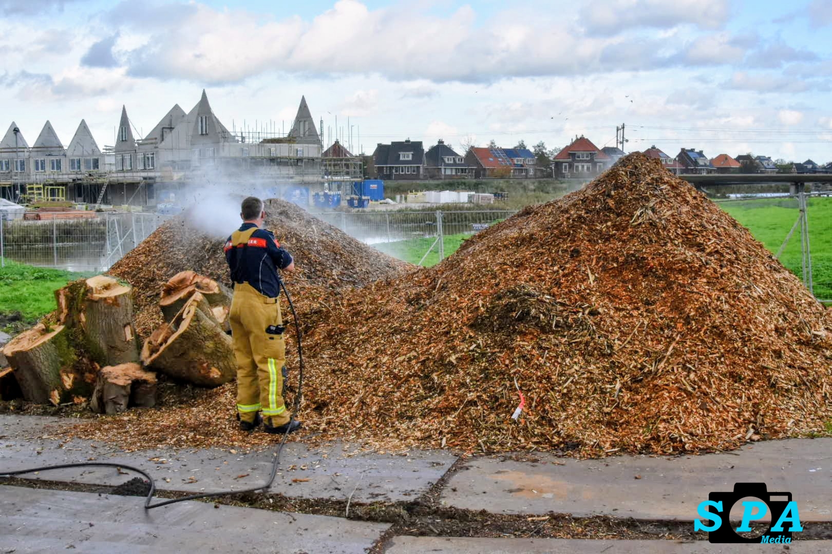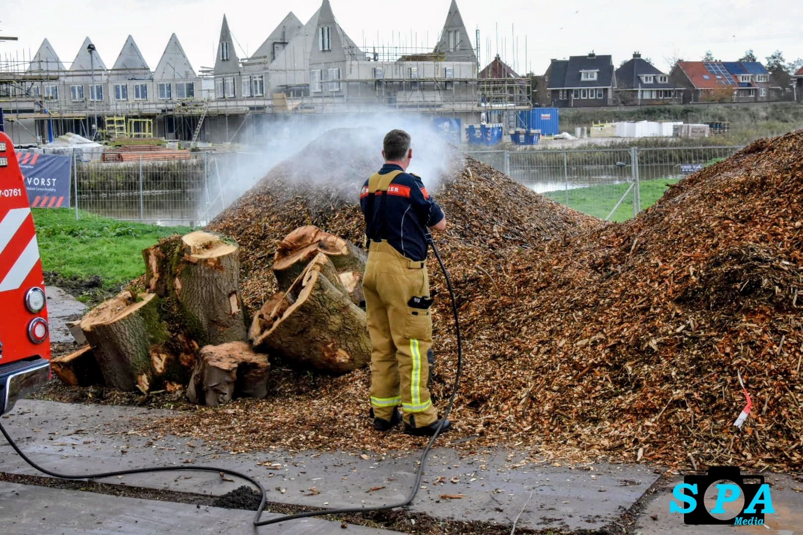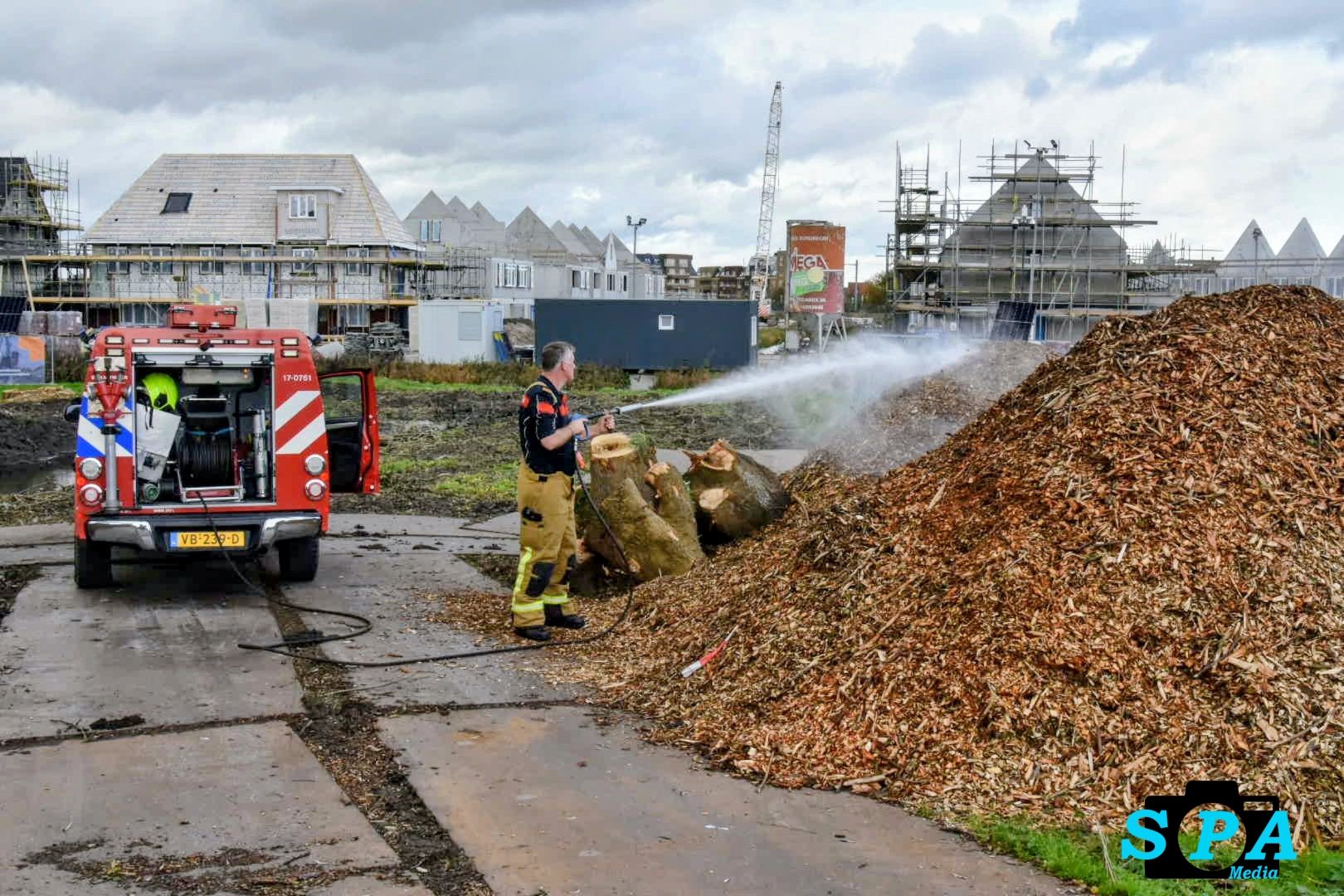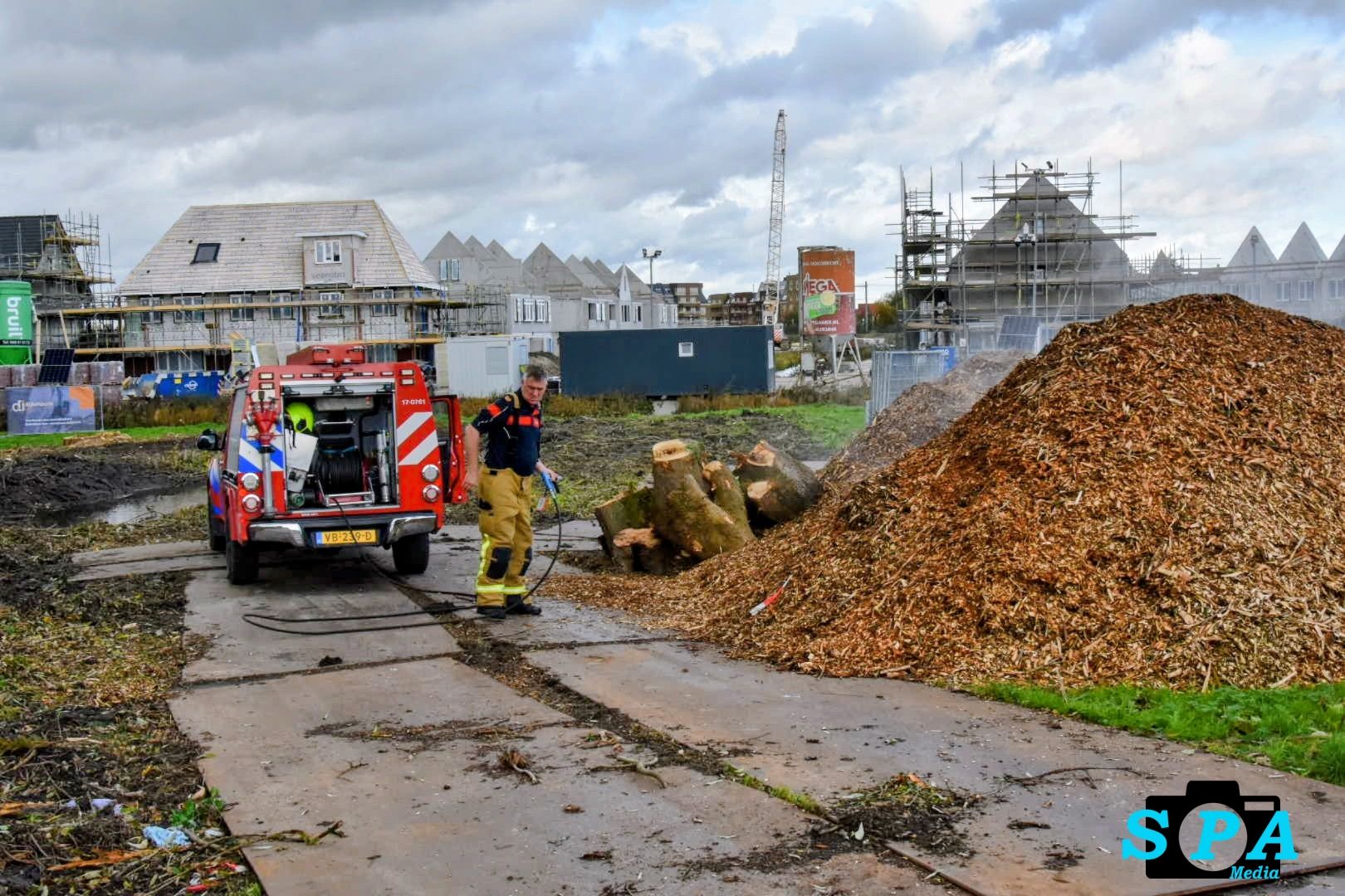Rond 13.30 uur kreeg de brandweer een melding van een brand in een berg met houtsnippers. De brandweerlieden kwamen met het Snel Interventie Voertuig (SIV) ter plaatse om het vuur te blussen. Zij wisten de broeibrand snel onder controle te krijgen en te doven.