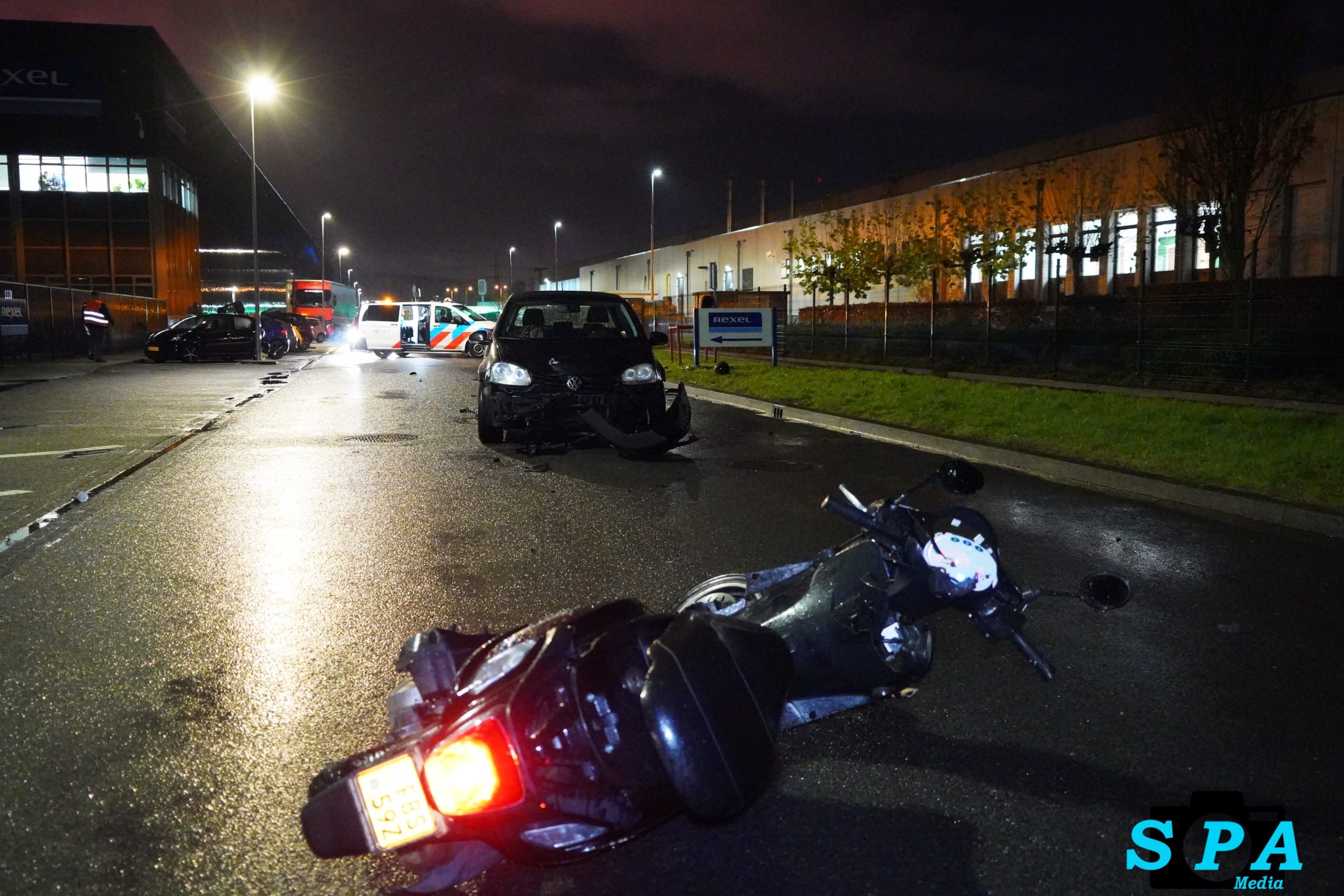 De politie heeft meerdere getuigenverklaringen opgenomen en bekijkt camerabeelden van omliggende bedrijven. Hoe het ongeval heeft kunnen gebeuren, wordt door de politie onderzocht. Zowel de scooter als de auto liepen aanzienlijke schade op.