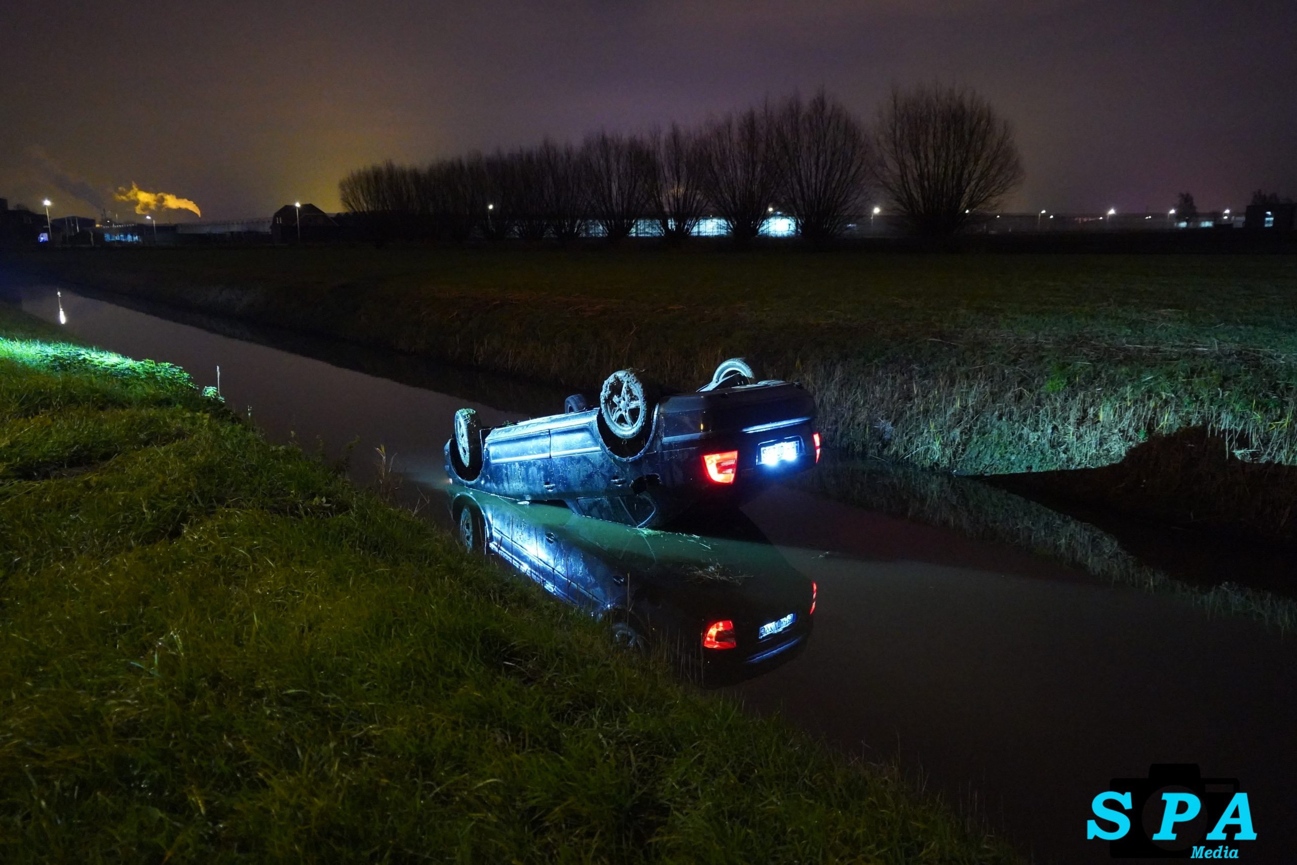 Bij aankomst bleek een auto op zijn kop in een sloot te liggen. De sloot was niet diep en de bestuurder wist op eigen kracht uit het voertuig te komen. Volgens de politie heeft de Poolse bestuurder de bocht gemist en is hij rechtdoor de sloot ingereden.
