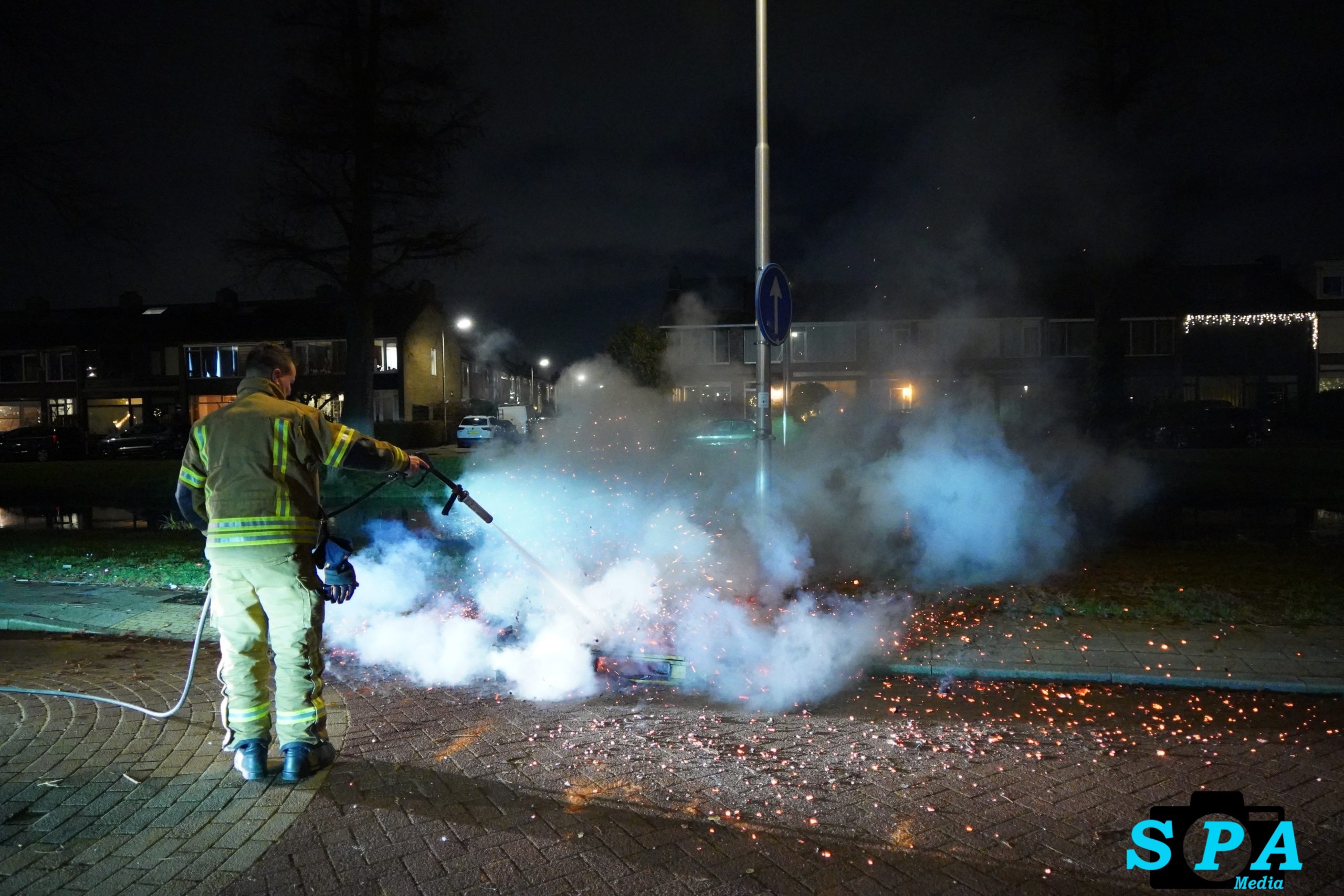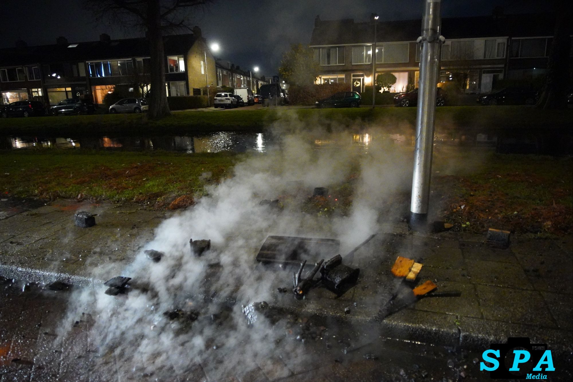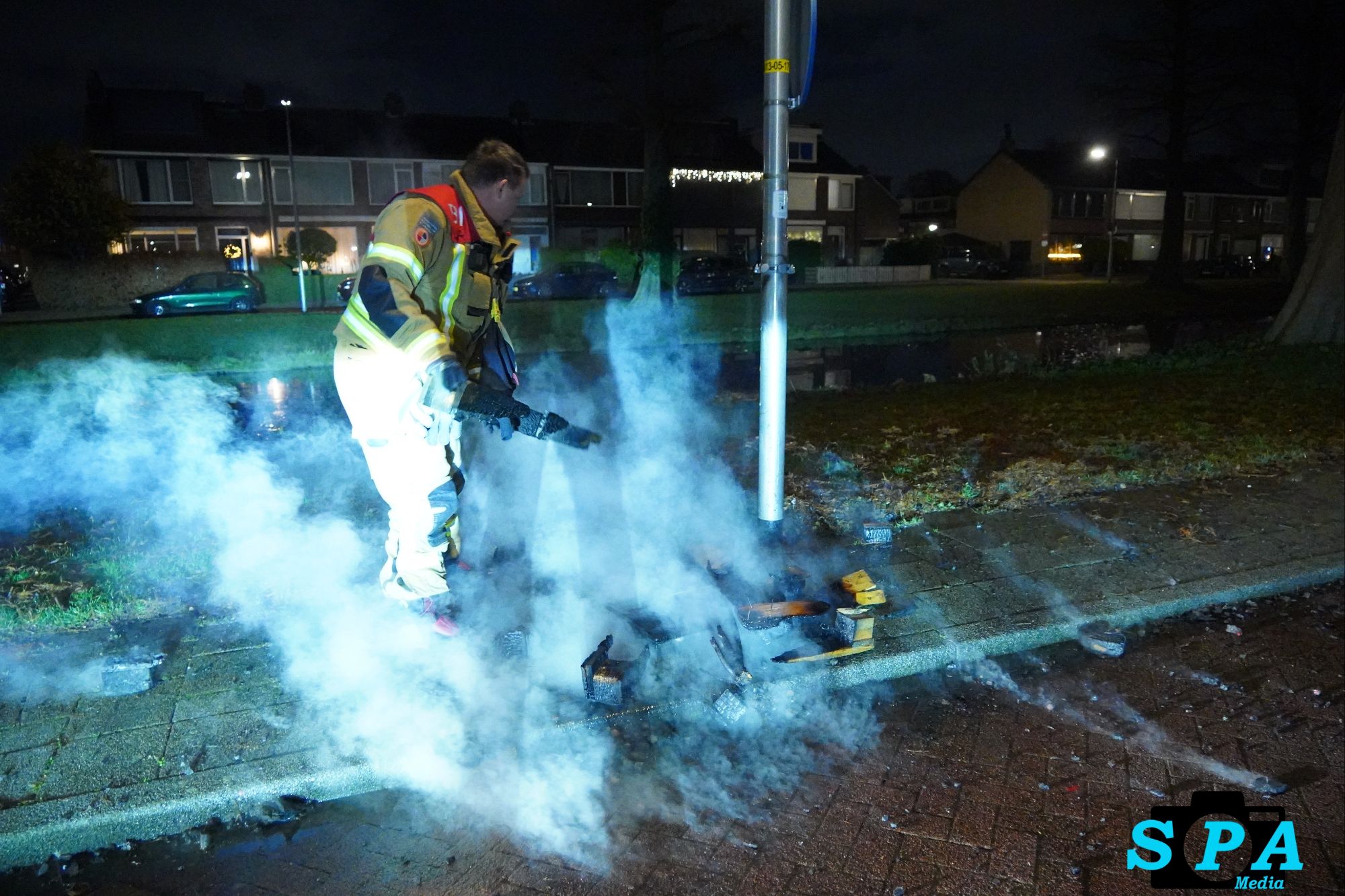Op straat was een klein vuurtje gestookt met stukken hout, waarin ook vuurwerk was gegooid. De brandweer kwam ter plaatse om het vuur te blussen. Bij aankomst van de brandweer zette een groepje jongeren het op een rennen.